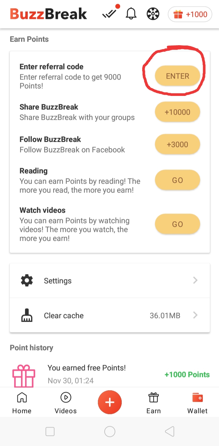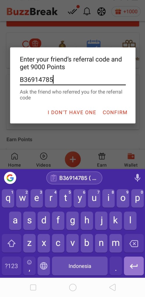 Inter reFeral code agar mendapatkan point’ yang nanti bisa di tuker pulsa atau uang, lihat gambar yang di bawah, Ingat code refferal code point’ : B36914785